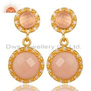 18K Gold Plated Sterling Silver Rose Chalcedony & CZ Drop Pendant With Chain