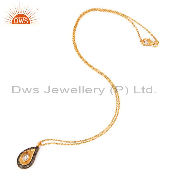 18K Gold Plated Sterling Silver Rose Cut Diamond Accent Pendant Necklace