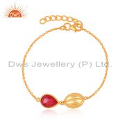18K Gold Plated Sterling Silver Ruby Red Corundum Designer Pendant With Chain