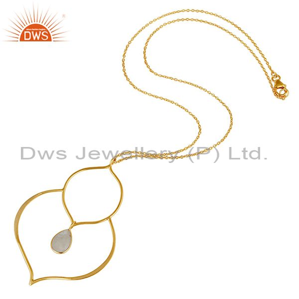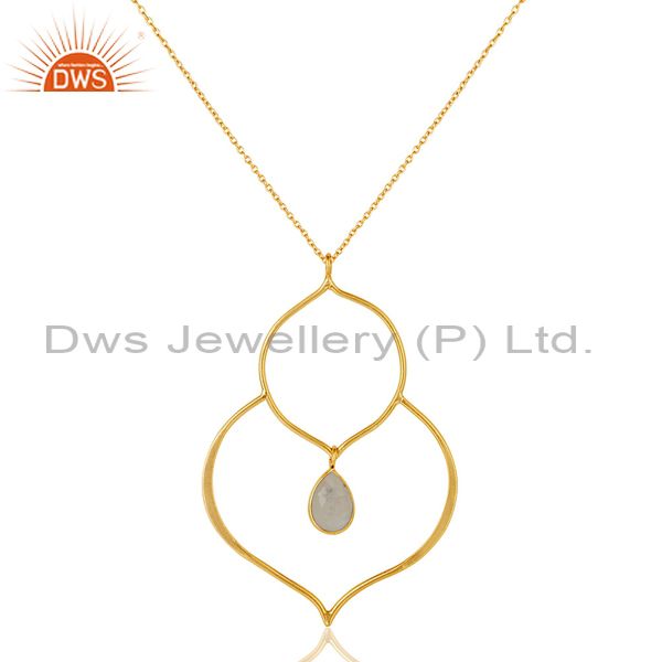 18K Gold PLated Sterling Silver Set Pendant Chain Necklace with Moonstone