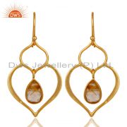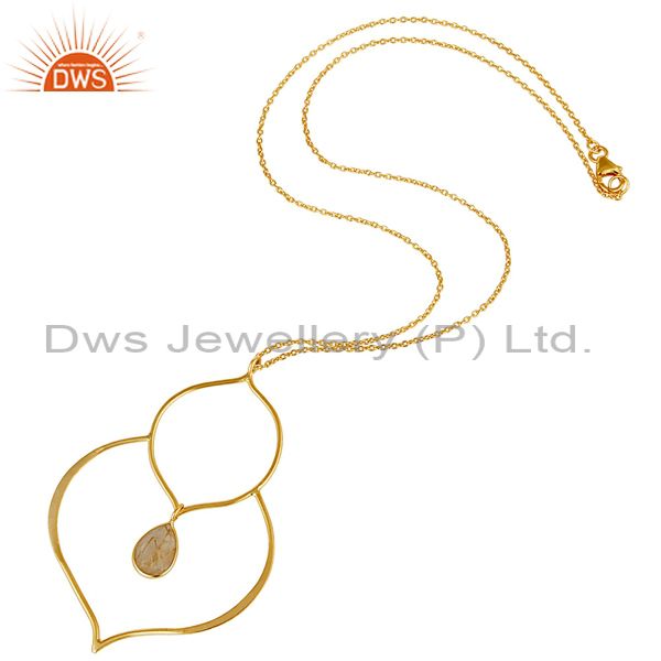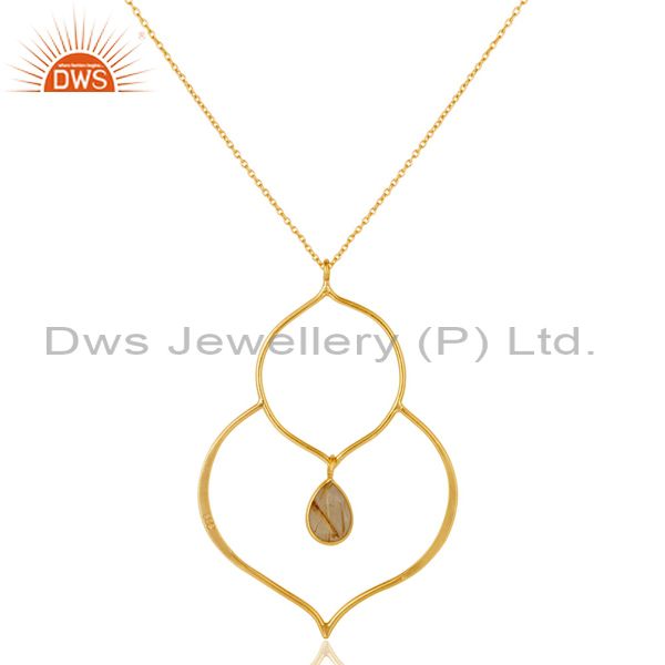 18K Gold PLated Sterling Silver Set Pendant Chain Necklace with Rutile