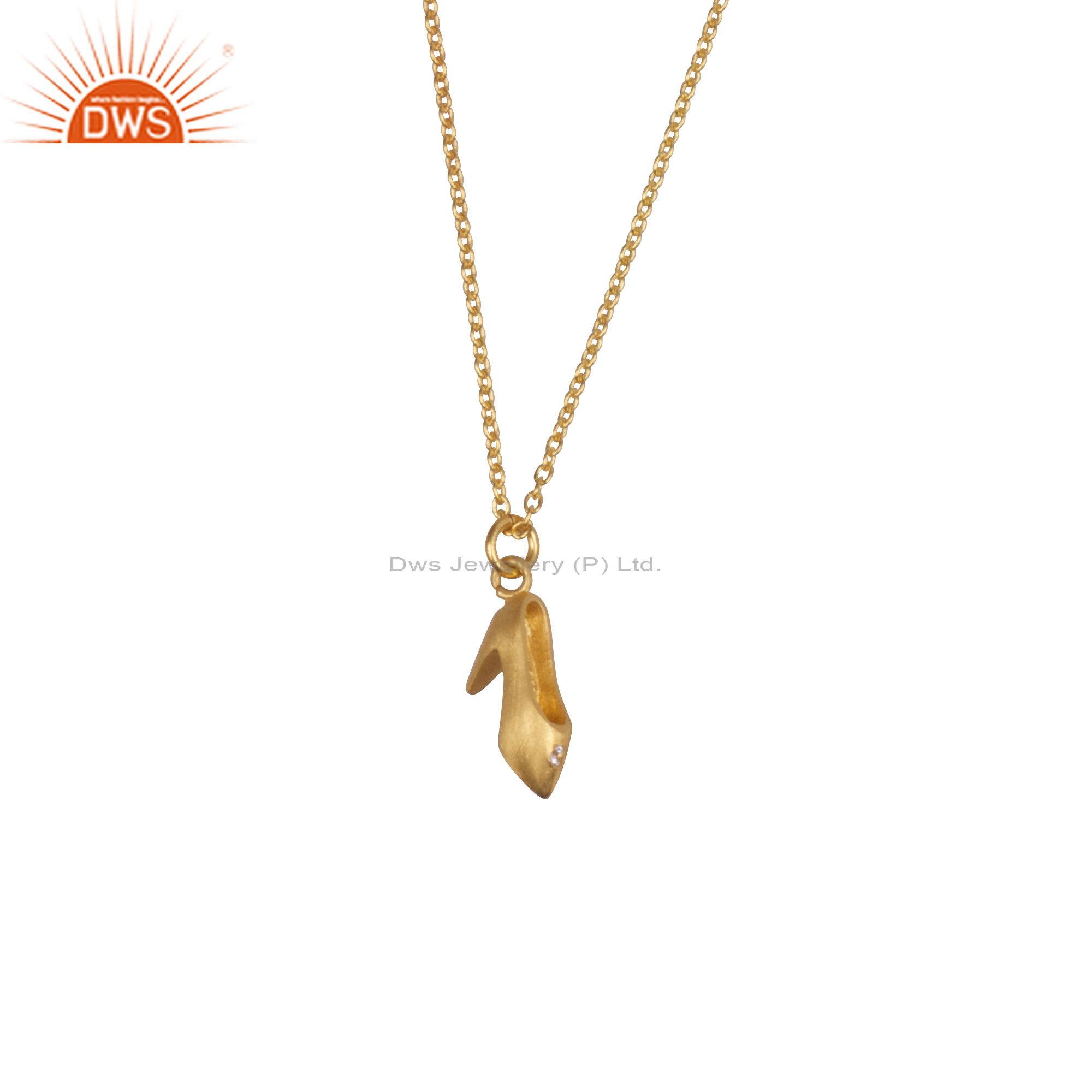 18K Gold Plated Sterling Silver White Topaz High Heel Sandal Pendant With Chain