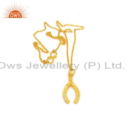 18K Gold Plated Sterling Silver White Topaz Horse Shoes Design Pendant Necklace