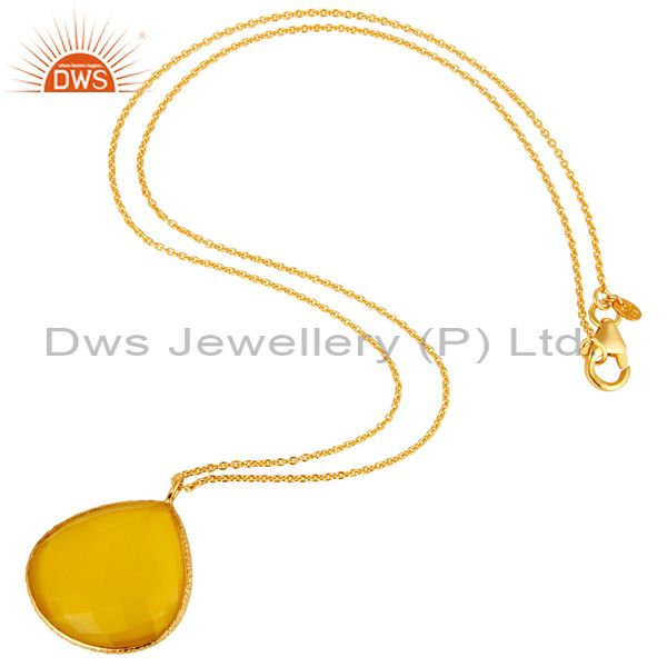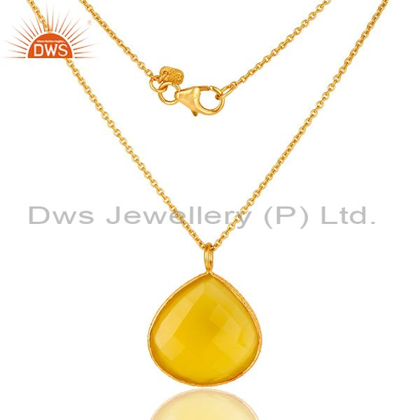 18K Gold Plated Sterling Silver Yellow Moonstone Bezel Drop Pendant With Chain