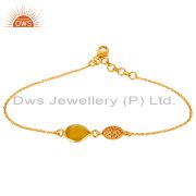 18K Gold Plated Sterling Silver Yellow Moonstone Designer Pendant With Chain