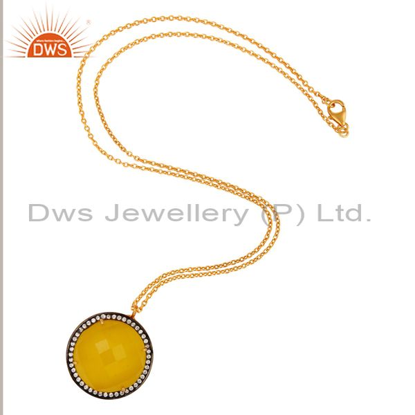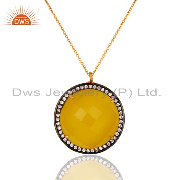 18K Gold Plated Sterling Silver Yellow Moonstone Lab Created Gemstone Pendant