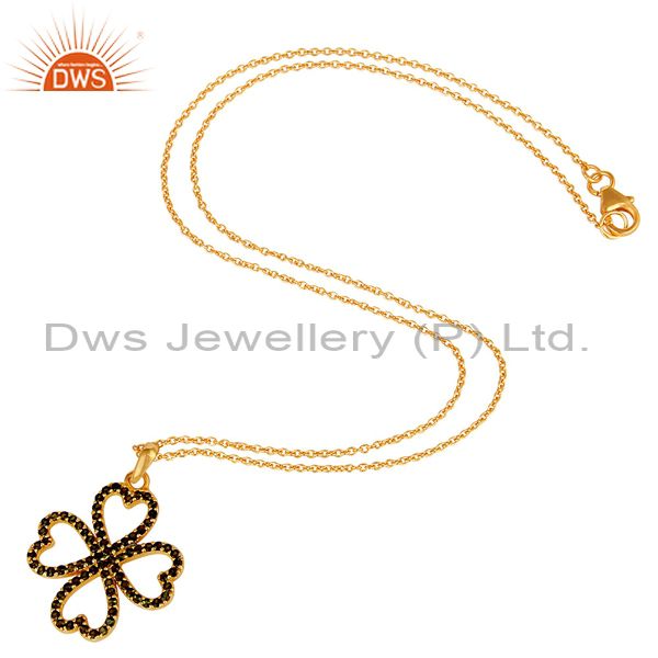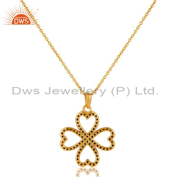 18k Gold Plated Tourmaline Flower Design Sterling Silver Pendant Necklace
