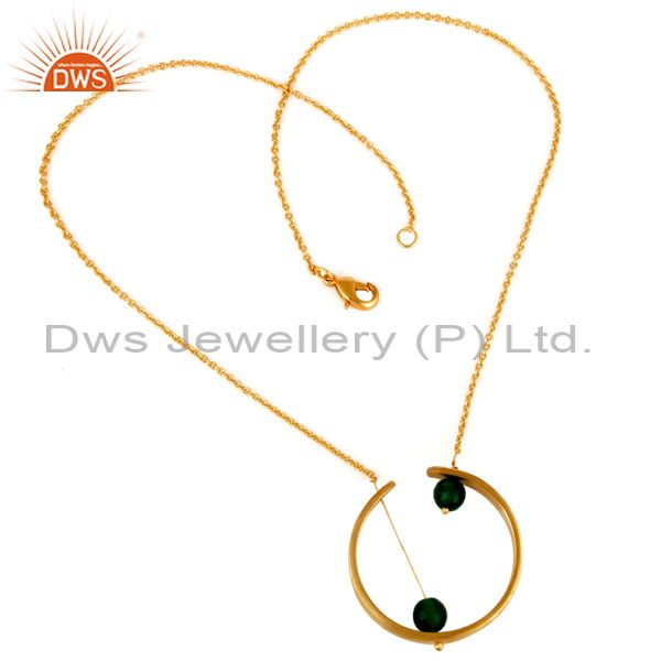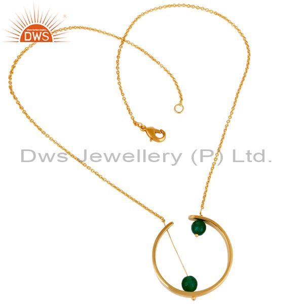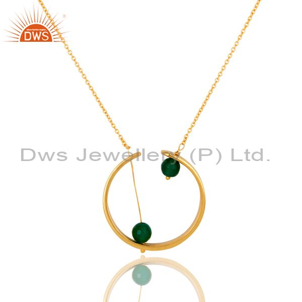 18K Gold Plated Traditional Handmade Green Onyx Faceted Chain Brass Pendant