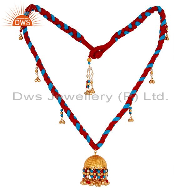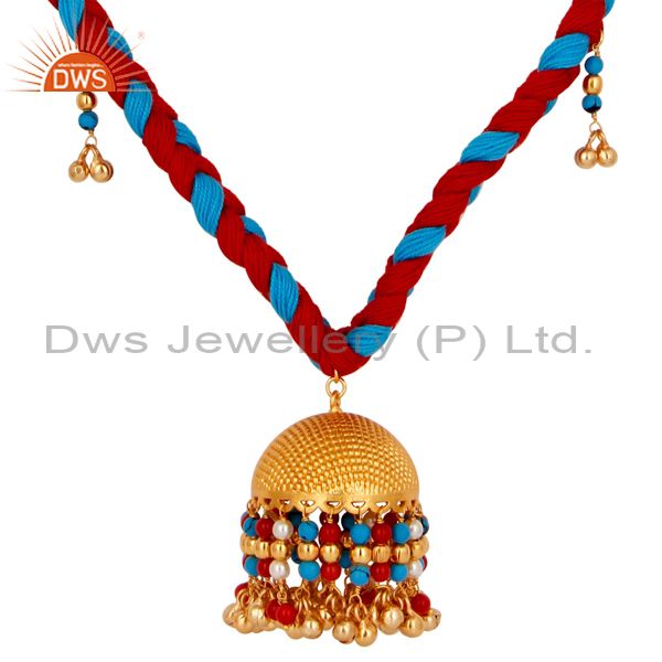 18K Gold Plated Turquoise Coral And White Pearl Indian Traditional Necklace