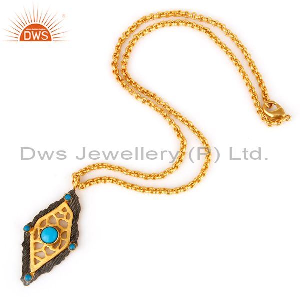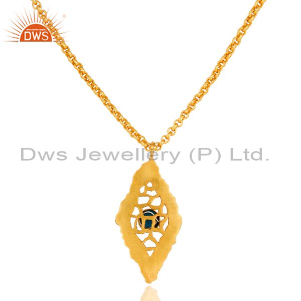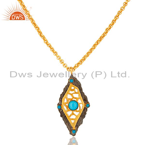 18K Gold Plated Turquoise Metrix Art deco Pendant Necklace with Chain