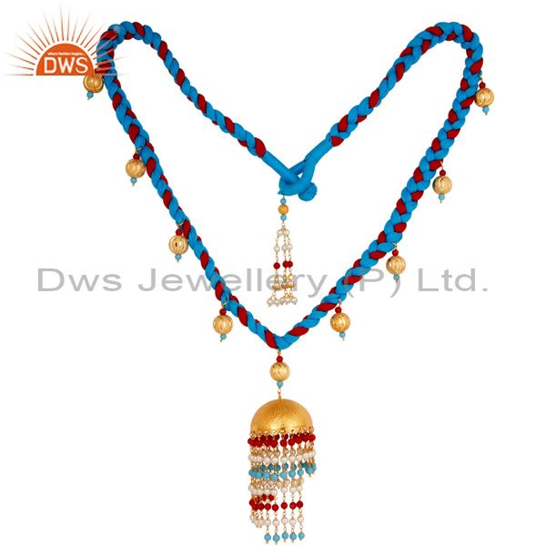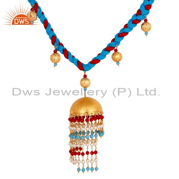 18K Gold Plated White Pearl Coral And Turquoise Indian Traditional Necklace