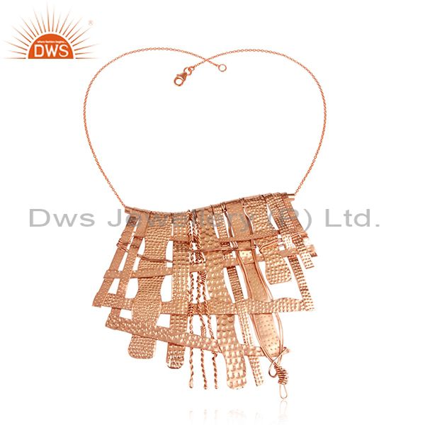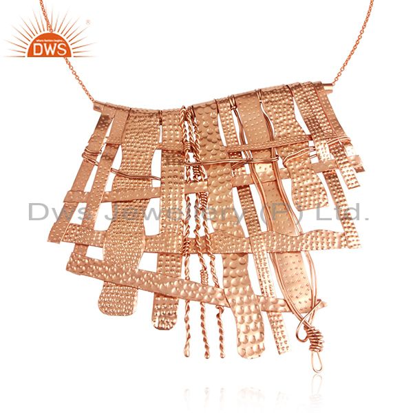 18K Rose Gold Plated Handmade Textured Design Brass Necklace Jewelry