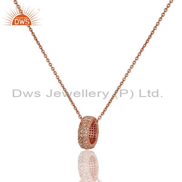 18k Rose Gold Plated Sterling Silver Fashion Charming White Topaz Chain Pendant