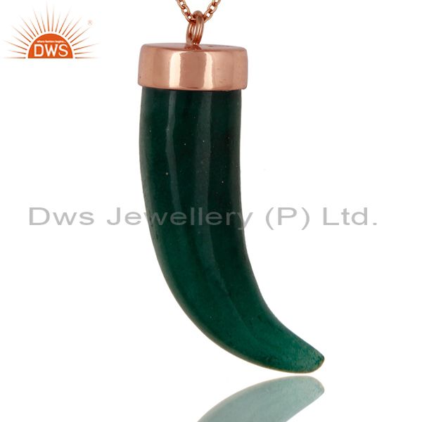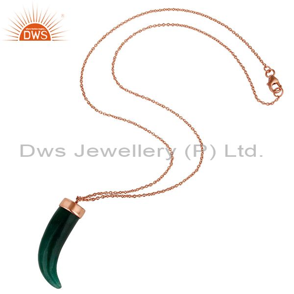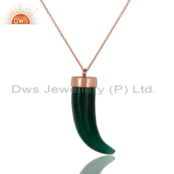 18K Rose Gold Plated Sterling Silver Green Aventurine Horn Pendant Necklace