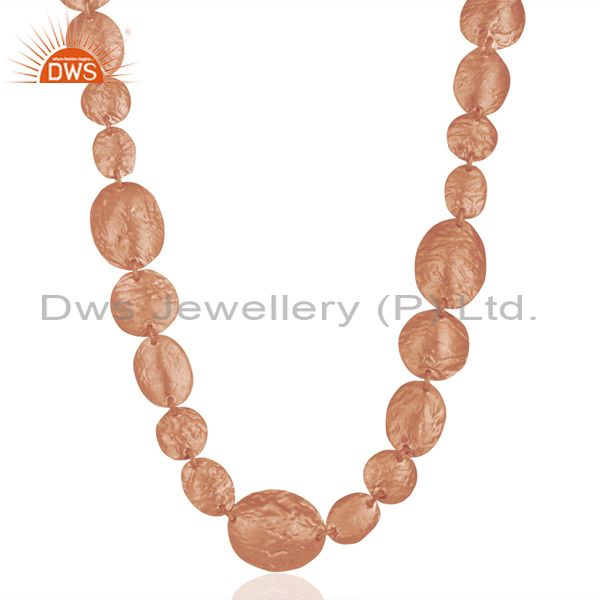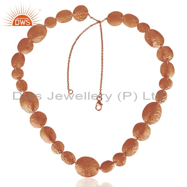 18K Rose Gold Plated Sterling Silver Hammered Disc Necklace