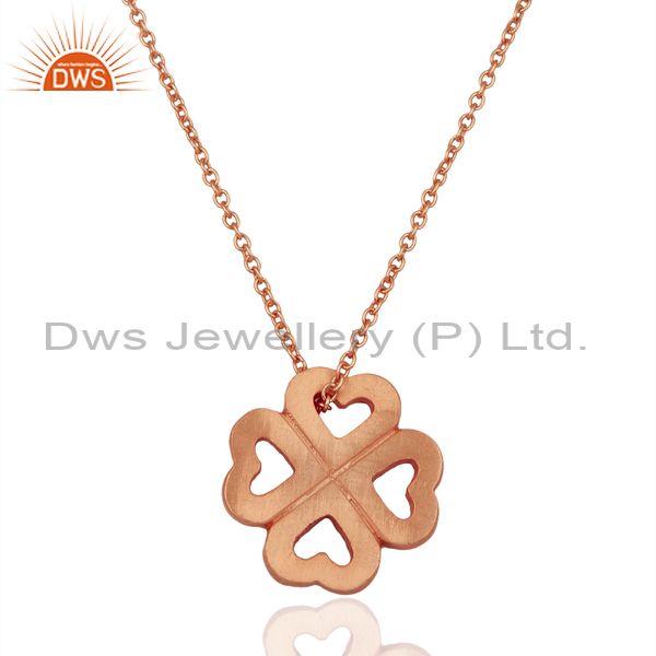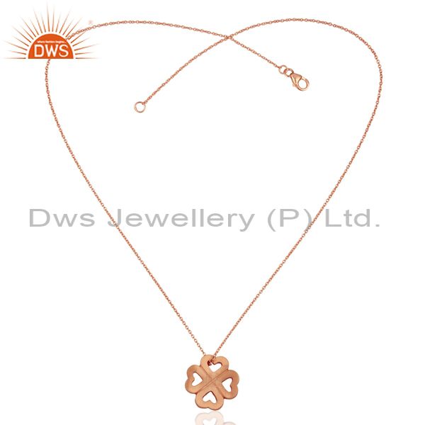 18K Rose Gold Plated Sterling Silver Heart Design Pendant With Chain Necklace