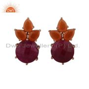 18K Rose Gold Plated Sterling Silver Peach Moonstone And Ruby Chain Necklace