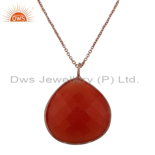 18K Rose Gold Plated Sterling Silver Peach Moonstone Bezel Pendant With Chain