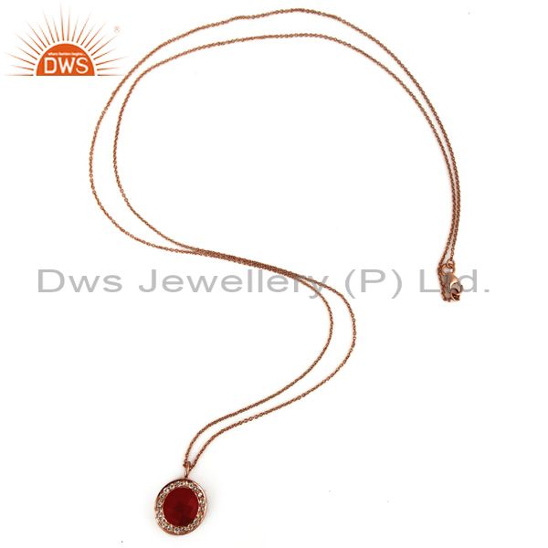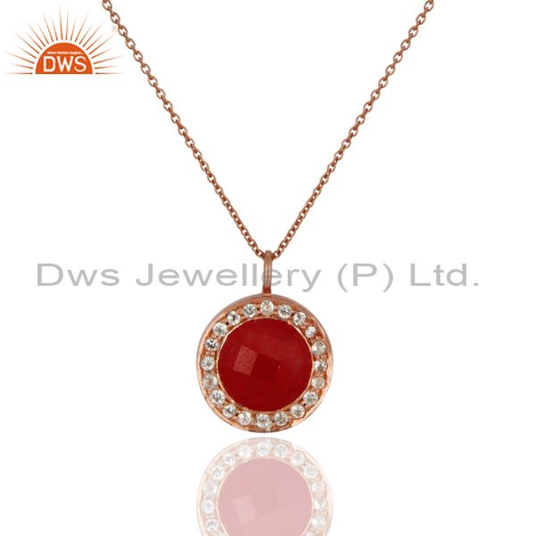 18K Rose Gold Plated Sterling Silver Red Aventurine & White Topaz Pendant