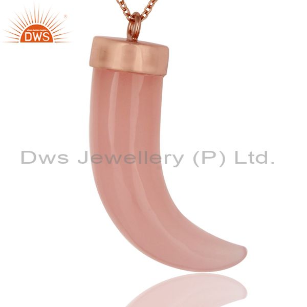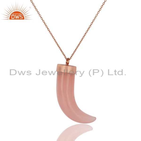 18K Rose Gold Plated Sterling Silver Rose Chalcedony Ox Horn Pendant Necklace