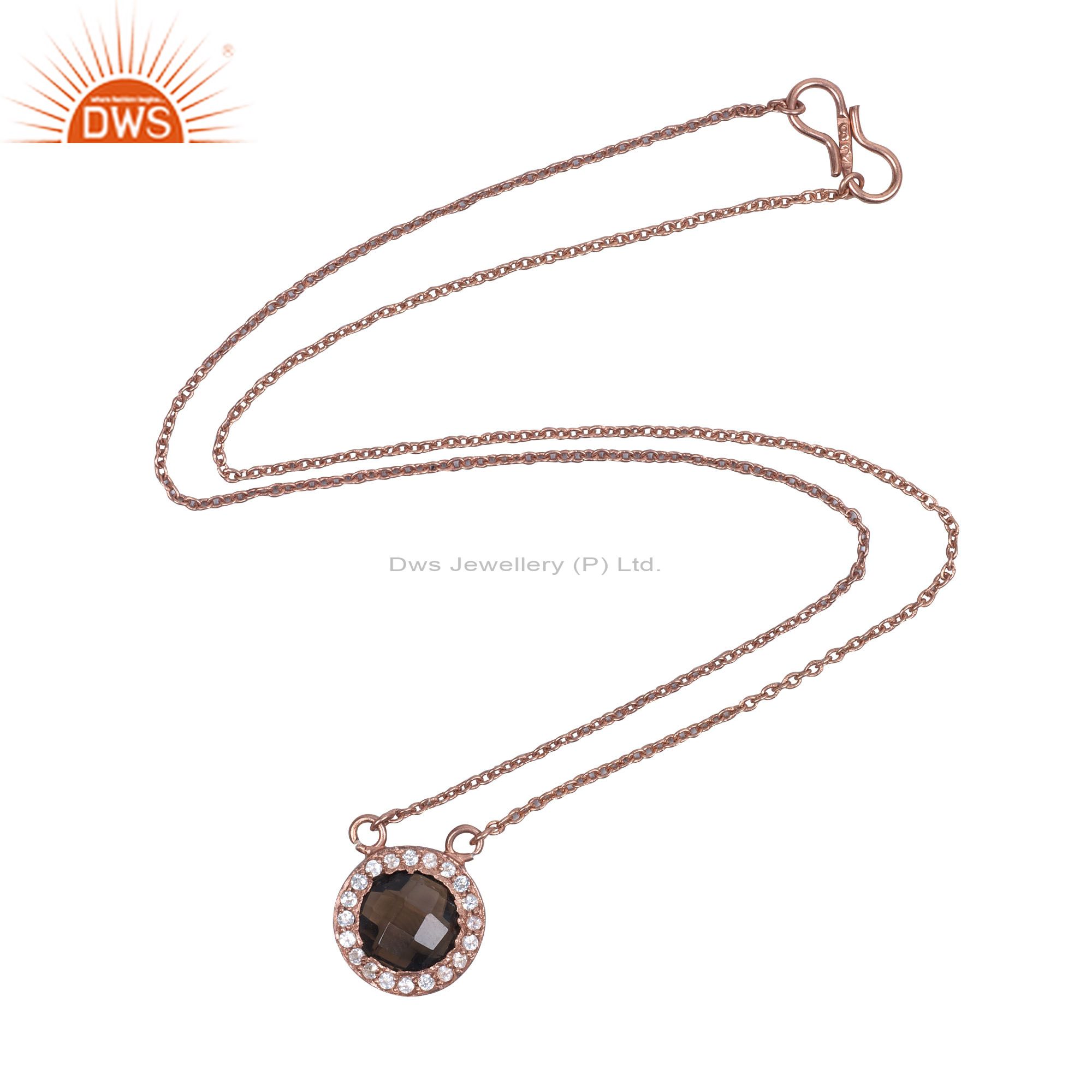 18K Rose Gold Plated Sterling Silver Smoky Quartz And White Topaz Pendant