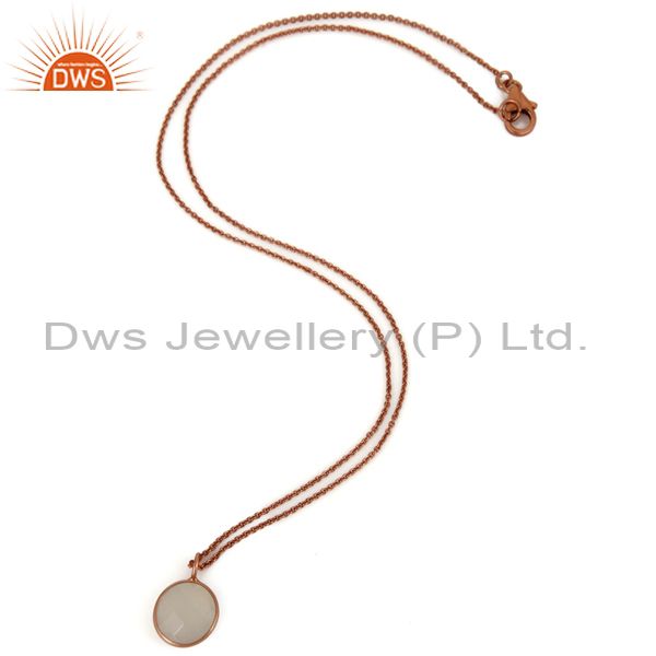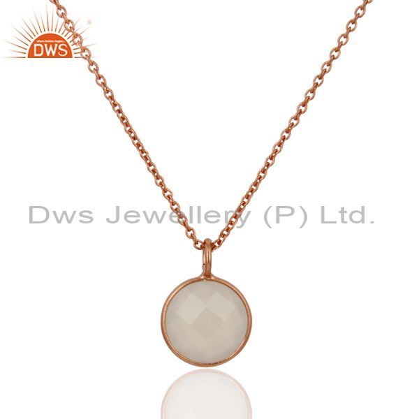 18K Rose Gold Plated Sterling Silver White Chalcedony Bezel Pendant With Chain