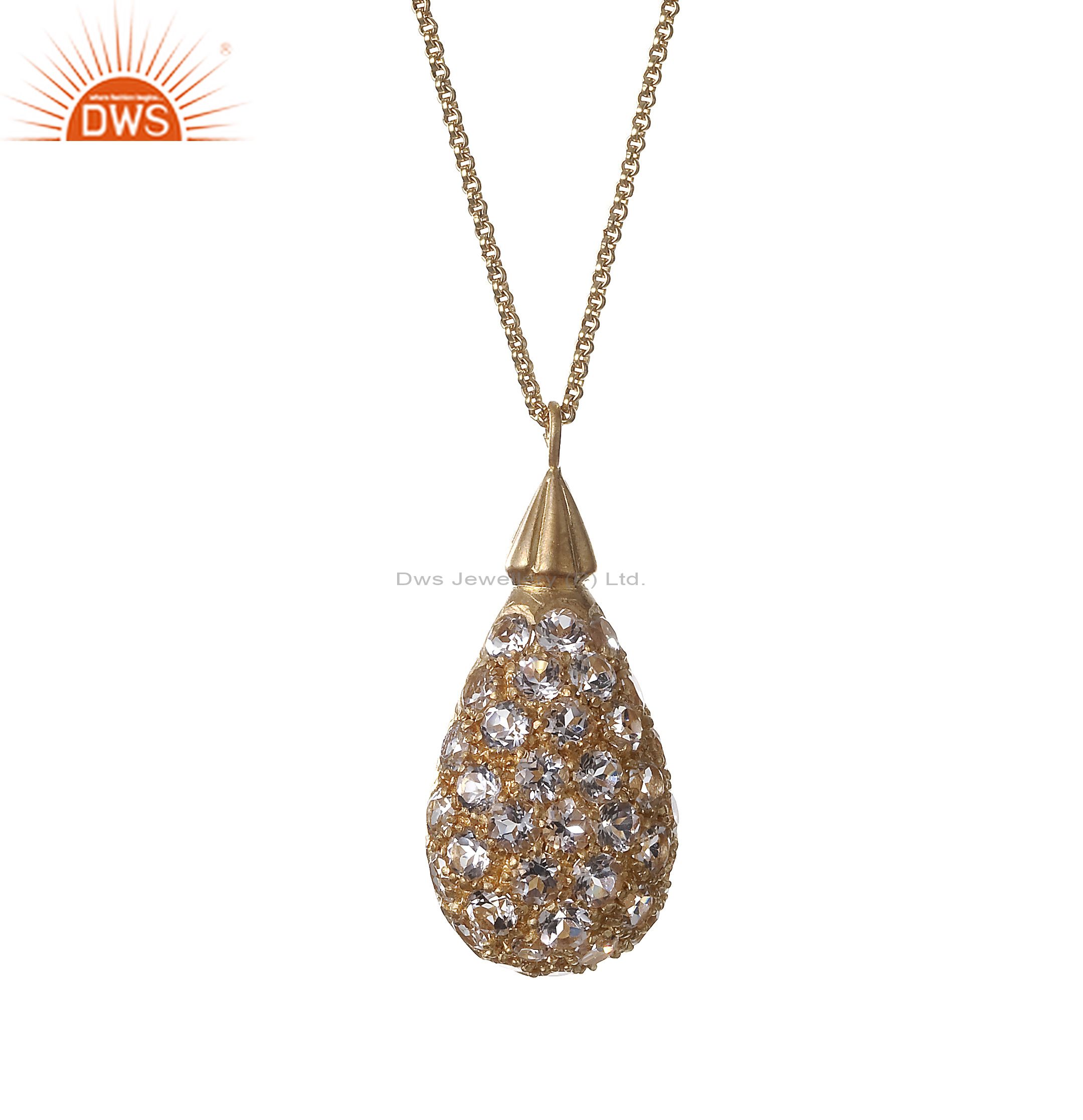 18K Rose Gold Plated Sterling Silver White Topaz Drop Pendant With Chain