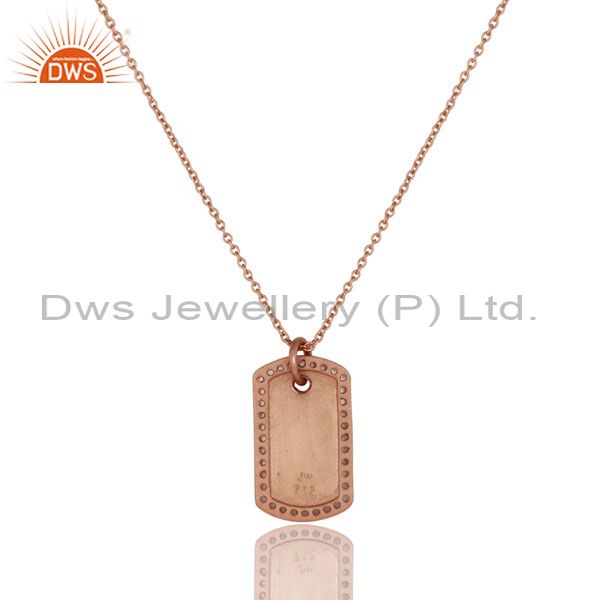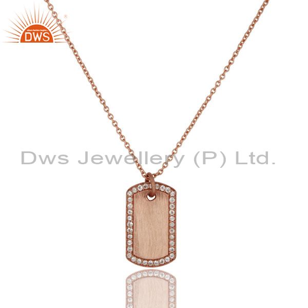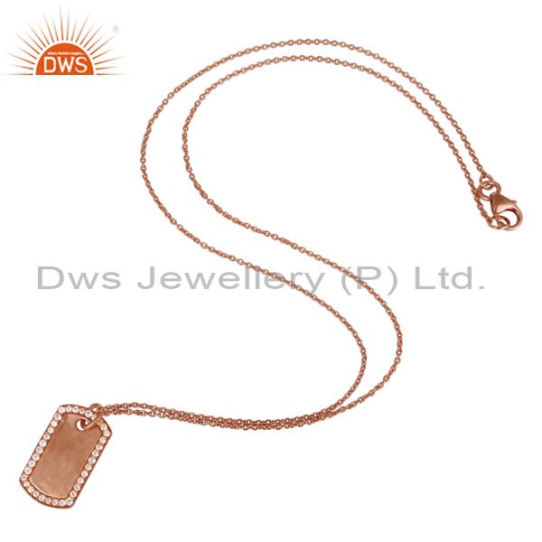 18K Rose Gold Plated Sterling Silver White Topaz Strip Pendant With Chain