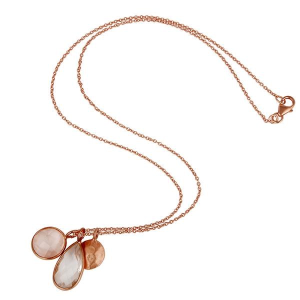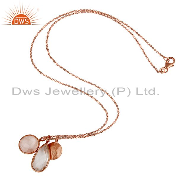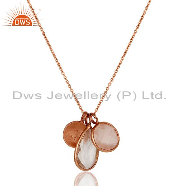18K Rose Gold Silver Crystal Quartz & Moonstone Bezel Set Pendant 16" Chain