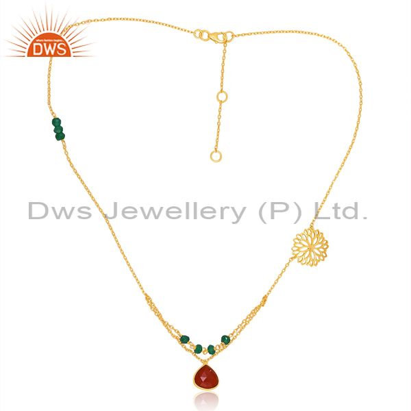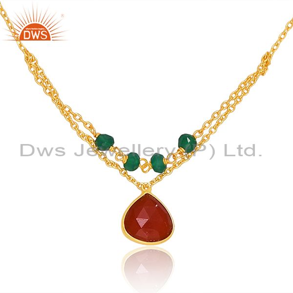 18K Sterling Silver Pendant & Necklace With Green & Red Onyx