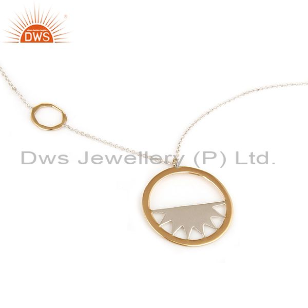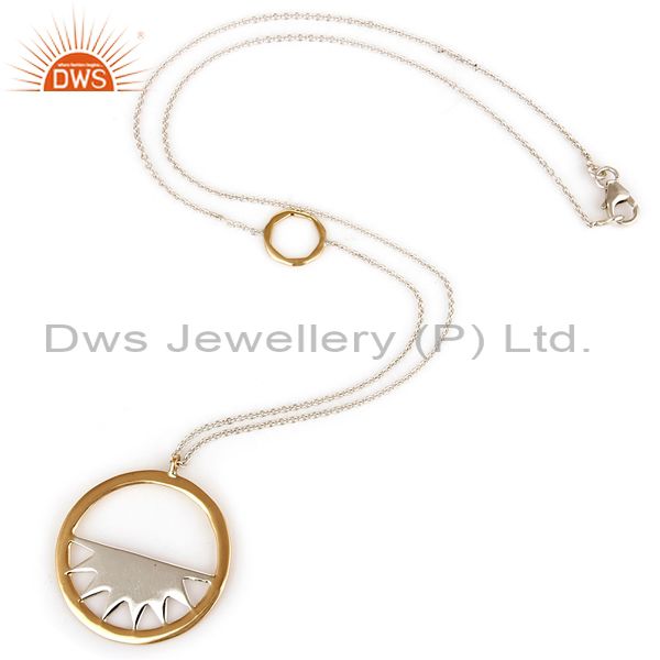 18K Yellow Gold And Sterling Silver Handmade Half Moon Pendant With 16" In Chain