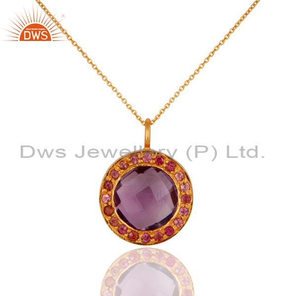 18K Yellow Gold Over 925 Sterling Silver Amethyst & Tourmaline Gemstone Pendant