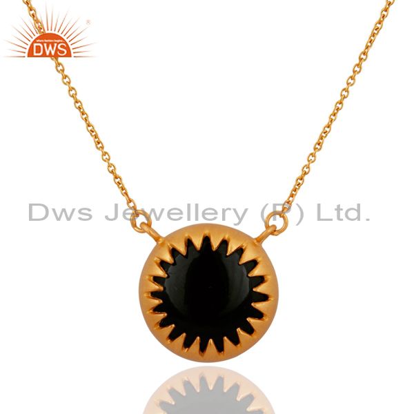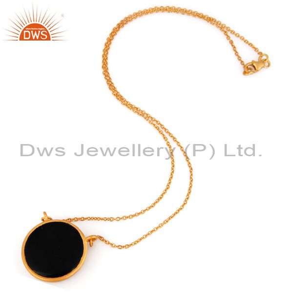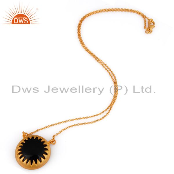 18K Yellow Gold Over Sterling Silver Black Onyx Gemstone Pendant With Chain