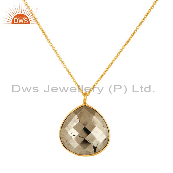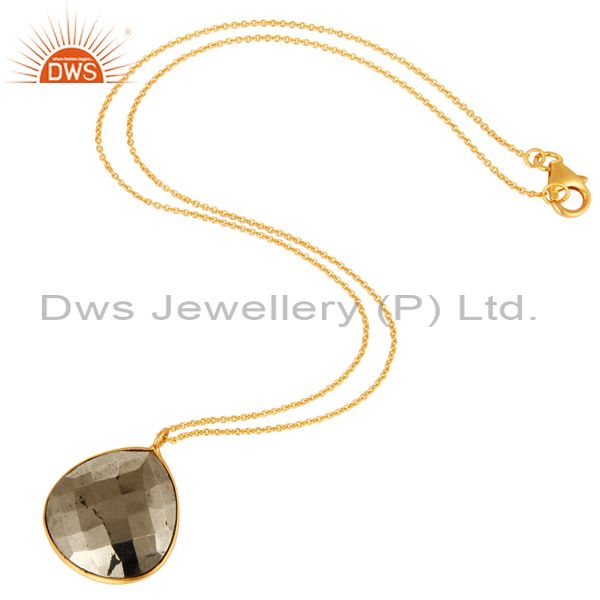 18K Yellow Gold Over Sterling Silver Golden Pyrite Bezel Set Pendant With Chain