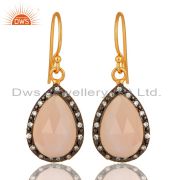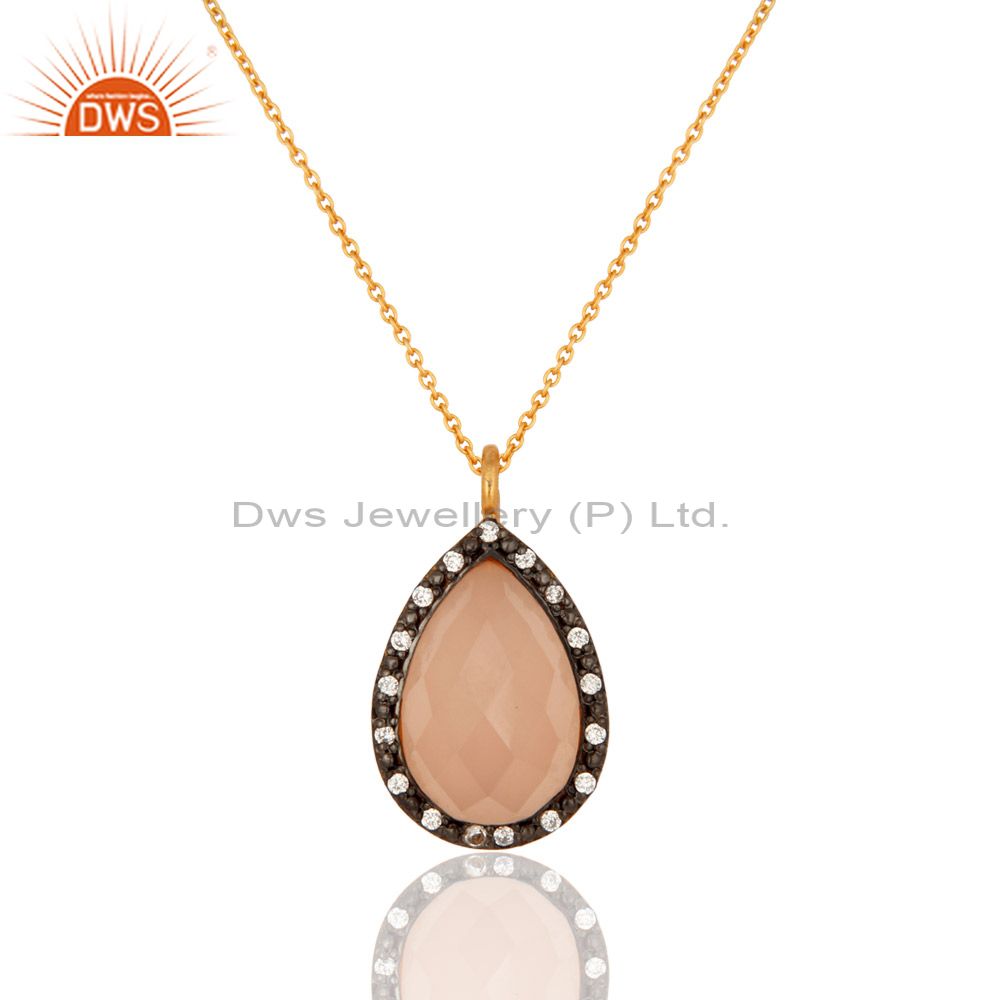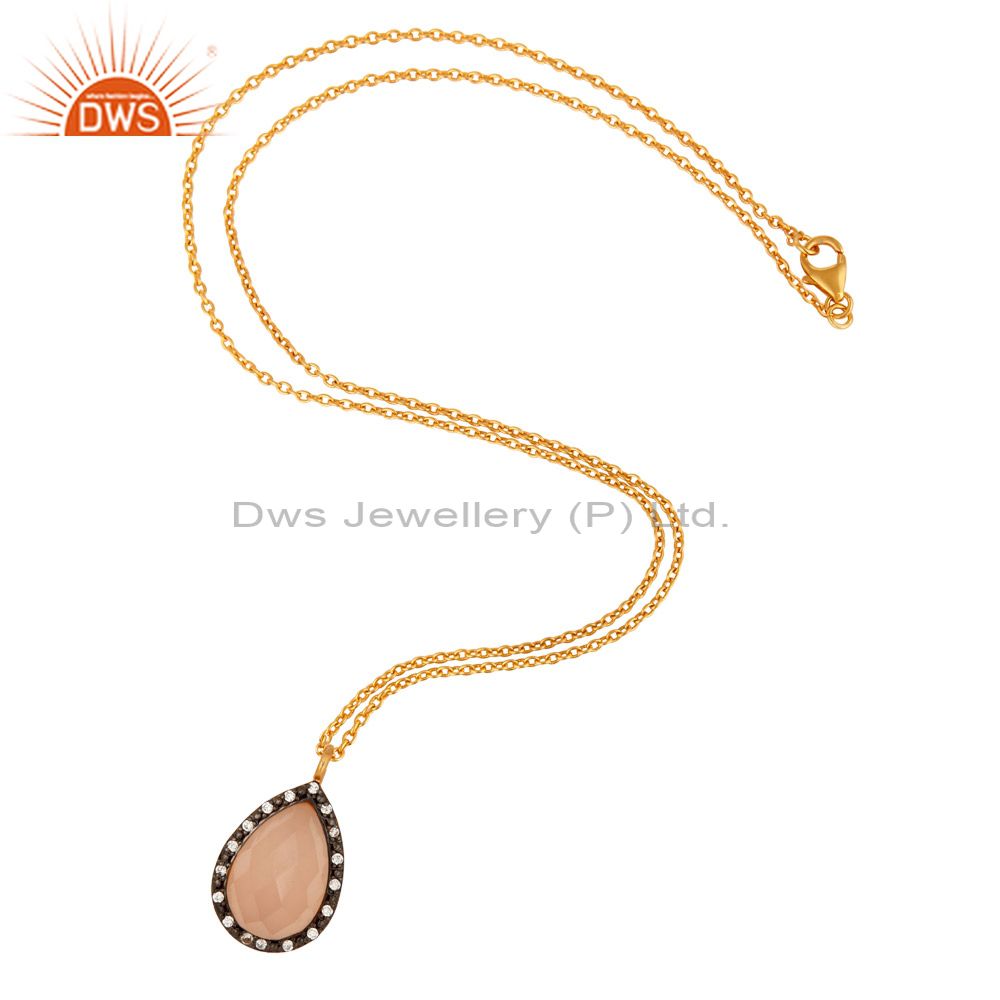 18K Yellow Gold Over Sterling Silver Rose Chalcedony & White Zircon Drop Pendant