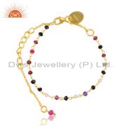 18K Yellow Gold Plated 925 Sterling Silver Multi Cut Stone Beads Necklace