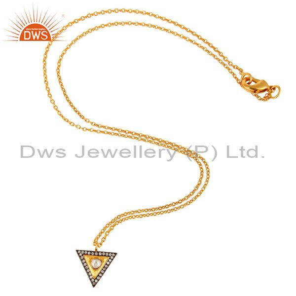 18K Yellow Gold Plated CZ Polki Cubic Zirconia Fashion Pendant With 16" Chain