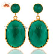 18K Yellow Gold Plated Silver Green Onyx Gemstone Bezel Set Pendant With Chain