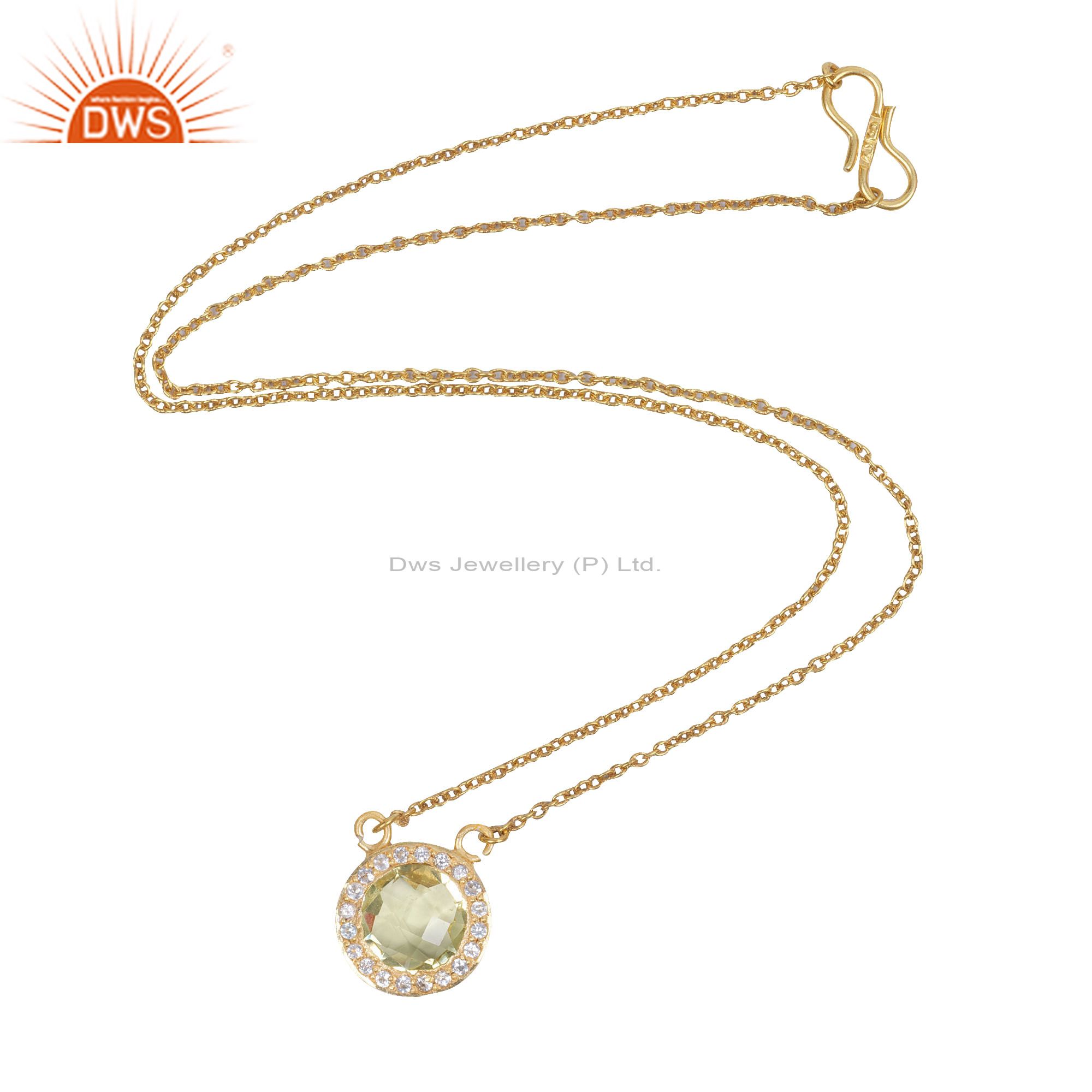 18K Yellow Gold Plated Solid Silver Lemon Topaz And White Topaz Chain Necklace