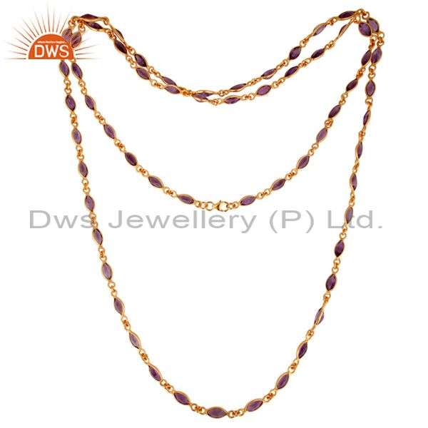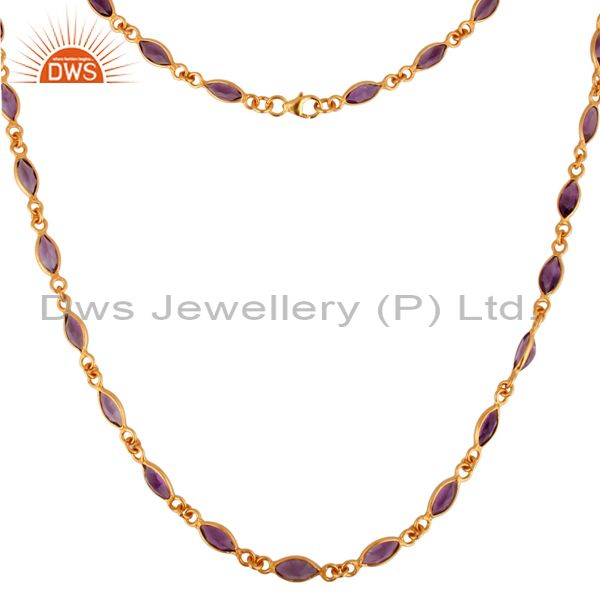 18K Yellow Gold Plated Sterling Silver Amethyst Gemstone Link Chain Necklace