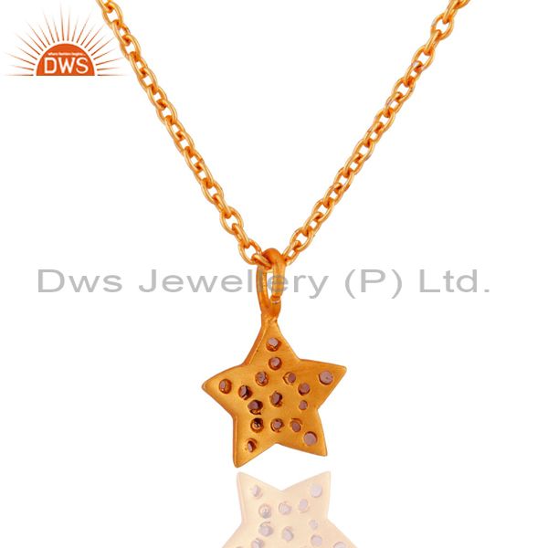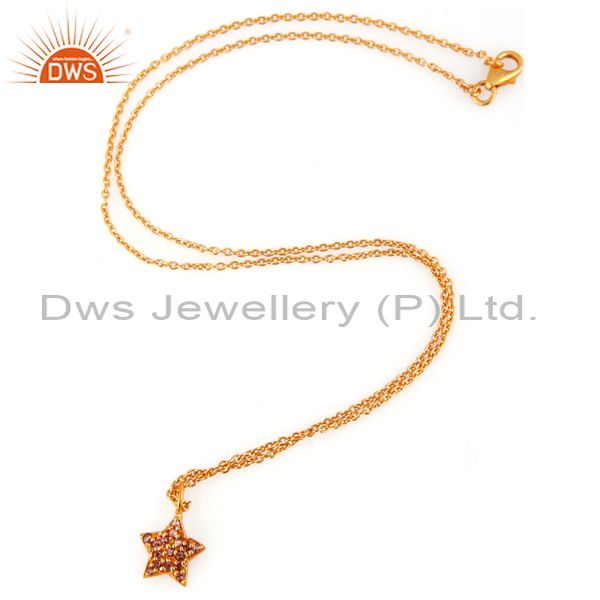 18K Yellow Gold Plated Sterling Silver Amethyst Star Charm Pendant With Chain