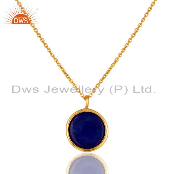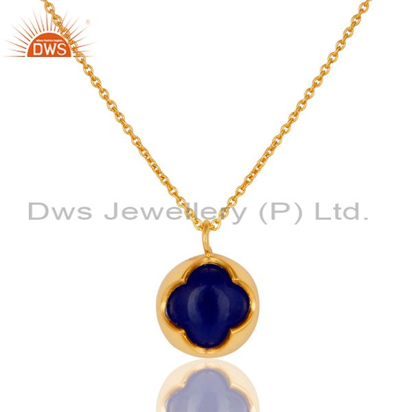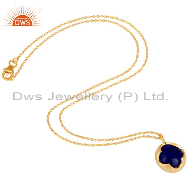 18K Yellow Gold Plated Sterling Silver Blue Aventurine Designer Pendant Necklace
