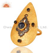 18K Yellow Gold Plated Sterling Silver Blue Sapphire Designer Pendant With Chain