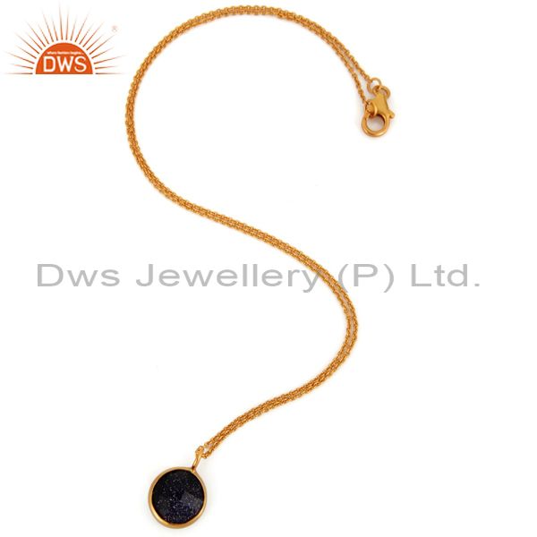 18K Yellow Gold Plated Sterling Silver Blue Sun Sitara Bezel Set Pendant