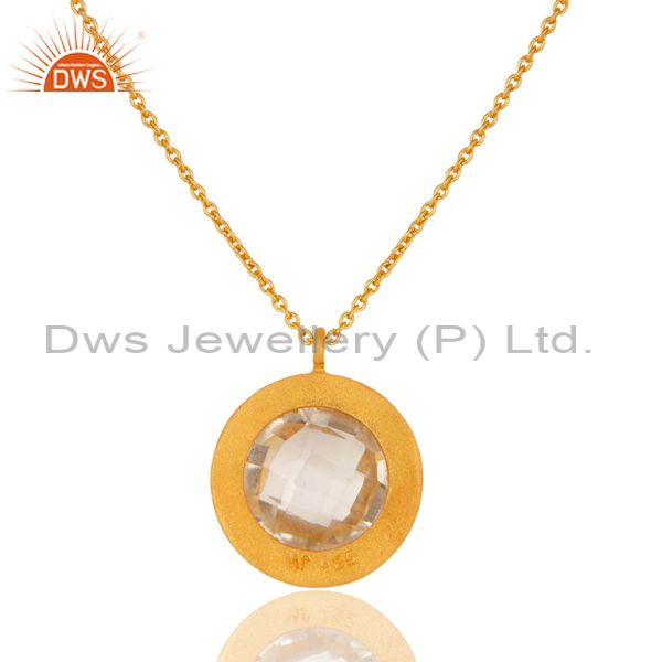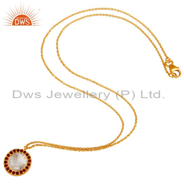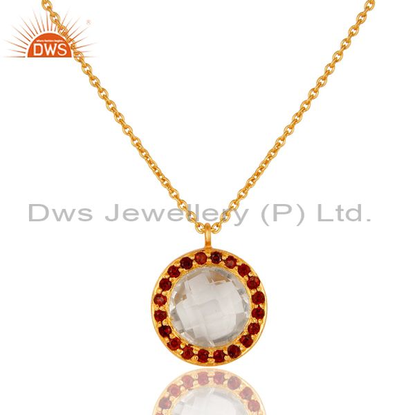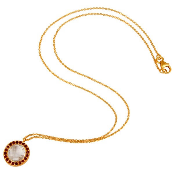 18K Yellow Gold Plated Sterling Silver Crystal Quartz & Garnet Pendant Necklace