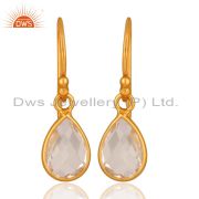 18K Yellow Gold Plated Sterling Silver Crystal Quartz Gemstone Drop Pendant