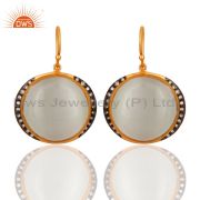 18K Yellow Gold Plated Sterling Silver Cz And White Moonstone Pendant Necklace