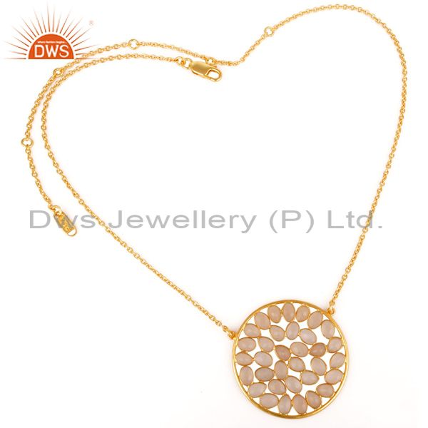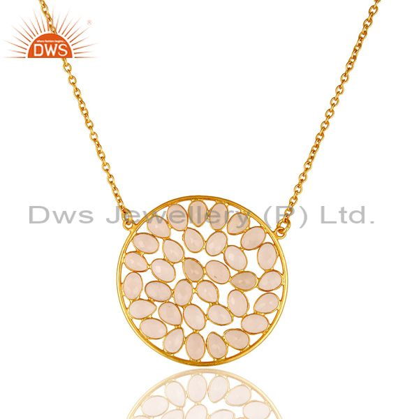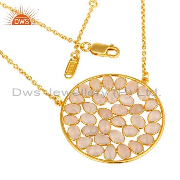 18K Yellow Gold Plated Sterling Silver Dyed Rose Chalcedony Pendant Necklace
