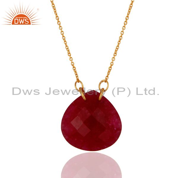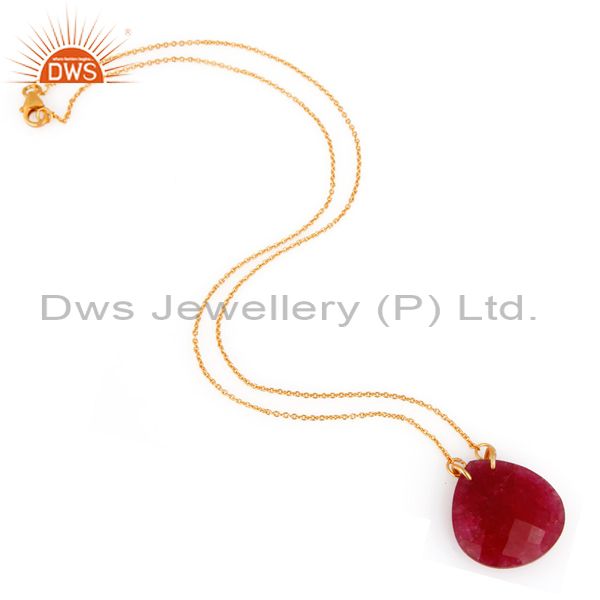 18K Yellow Gold Plated Sterling Silver Dyed Ruby Corundum Drop Pendant