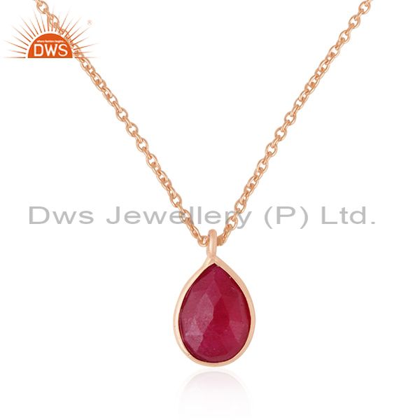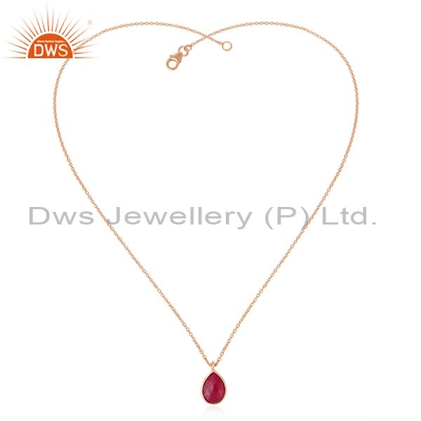 18K Yellow Gold Plated Sterling Silver Dyed Ruby Drop Pendant With Chain